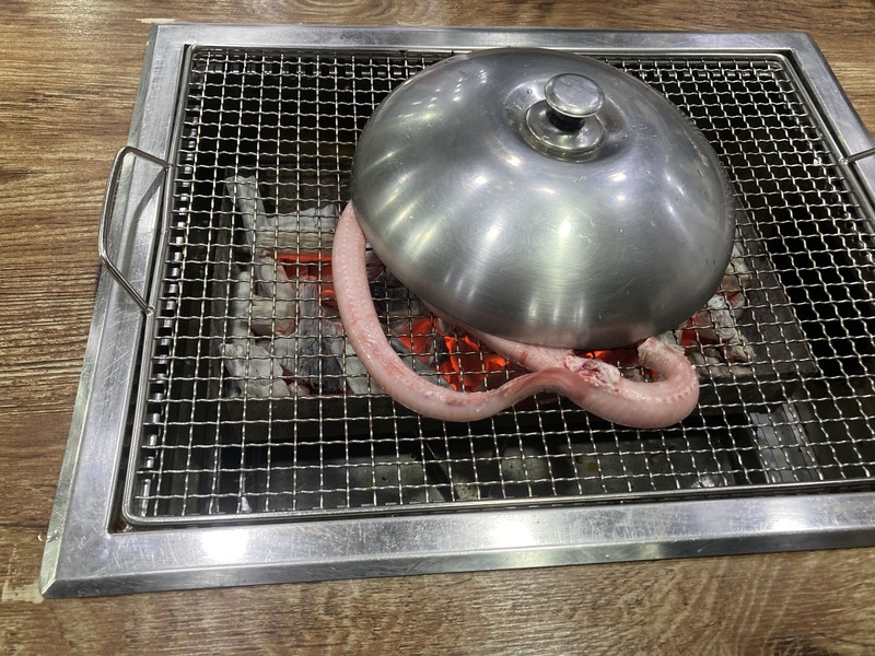 싱싱한 꼼장어를 구워 먹을 때 내장도 모두 먹을 수 있다네요.